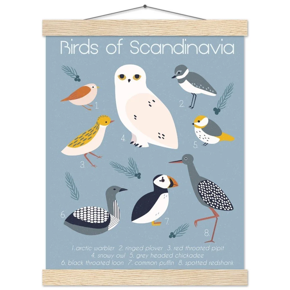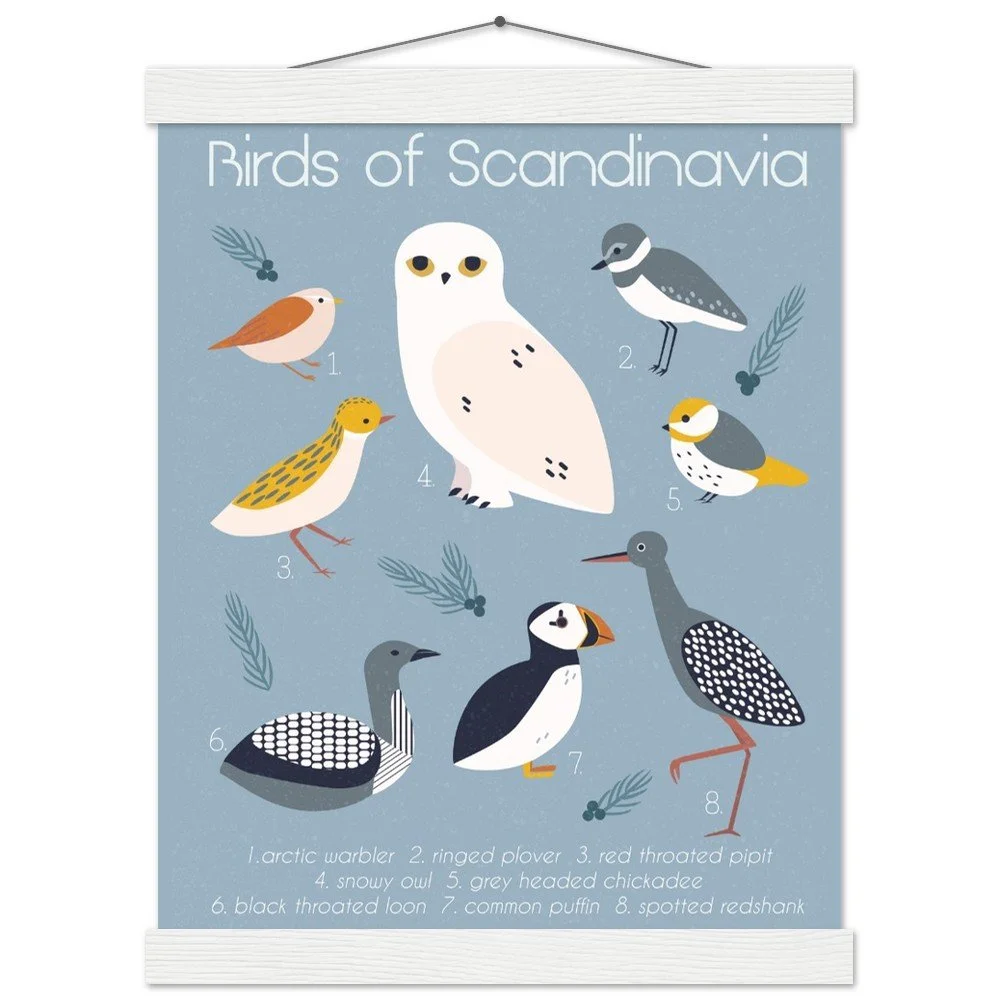 "Birds of Scandinavia" 11' x 14" poster with wooden hanger